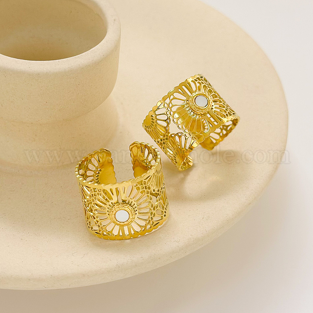 Полые цветочные манжеты из нержавеющей стали с натуральными ракушками 304 открытые кольца для женщин