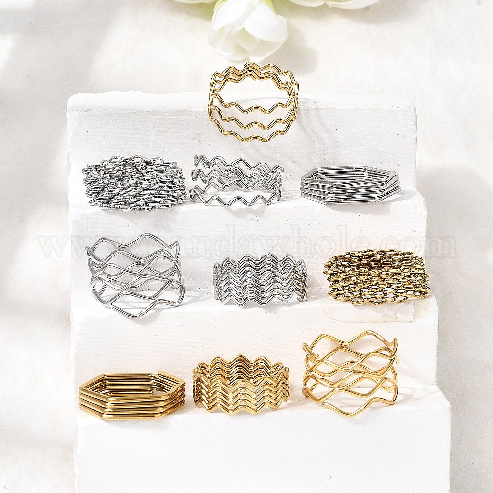 5 шт. 304 открытые манжеты из нержавеющей стали для женщин, волна, ионное покрытие (ip)