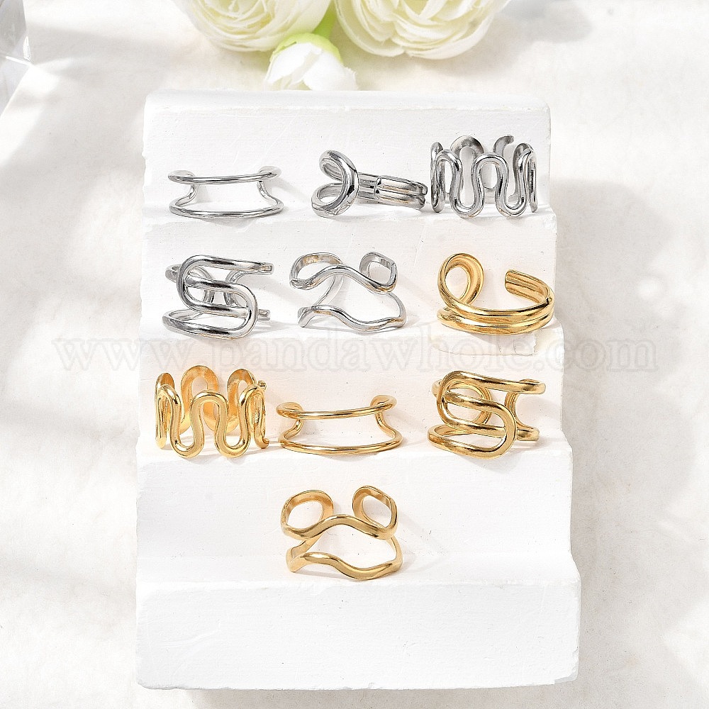 • Настоящее золото 18K 5 шт. 304 открытые манжеты из нержавеющей стали для женщин, ионное покрытие (ip), реальный 18 k позолоченный, 8~16 мм, внутренний диаметр: 16.5~18 мм