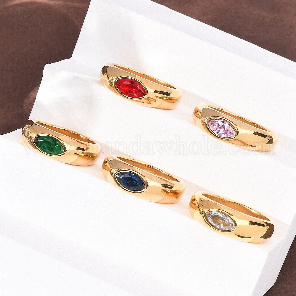 304 из нержавеющей стали кольца перста широкополосного, лошадиный глаз , со стеклом, ионное покрытие (ip), золотые