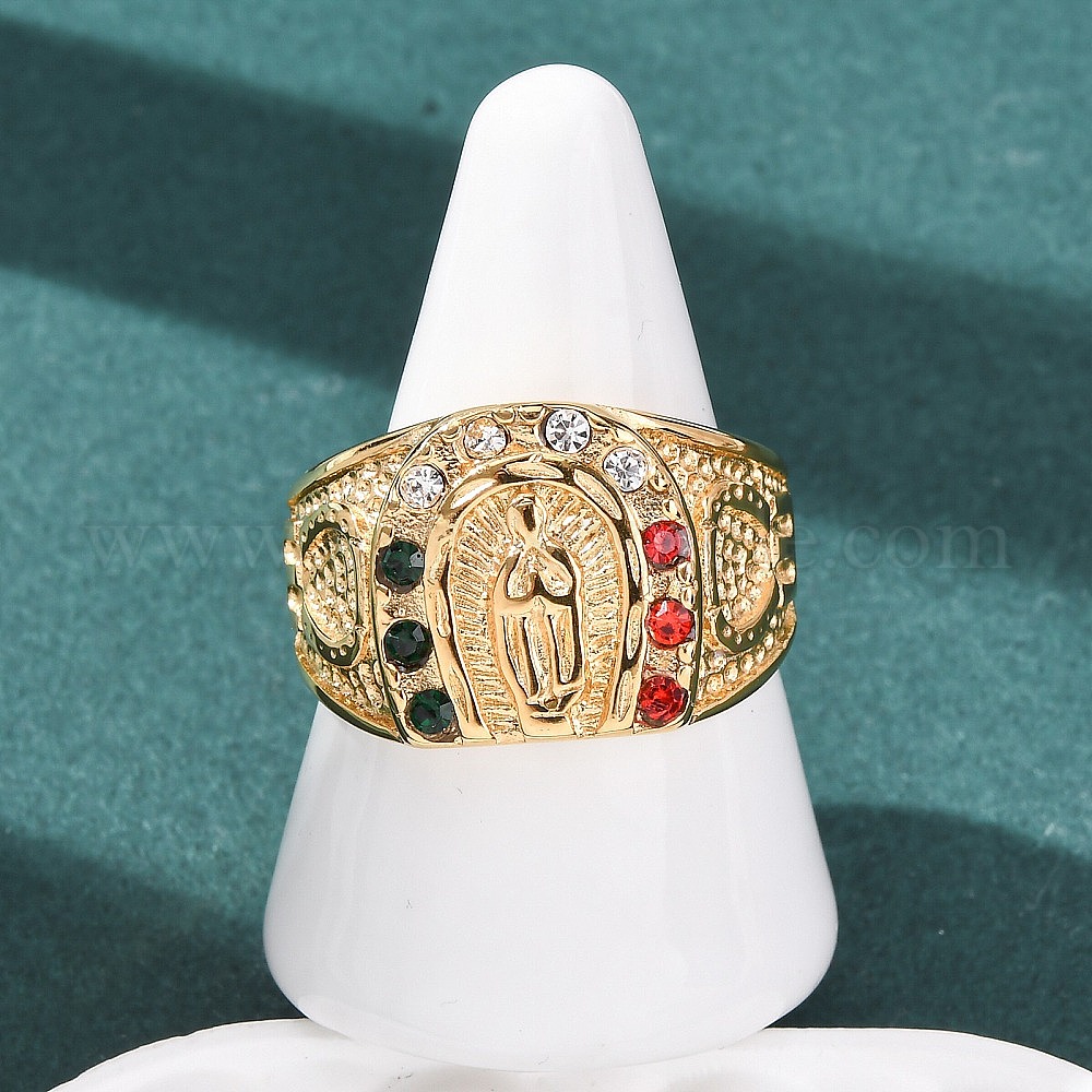 304 из нержавеющей стали кольца перста широкополосного, Дева Мария, со стразами, ионное покрытие (ip)