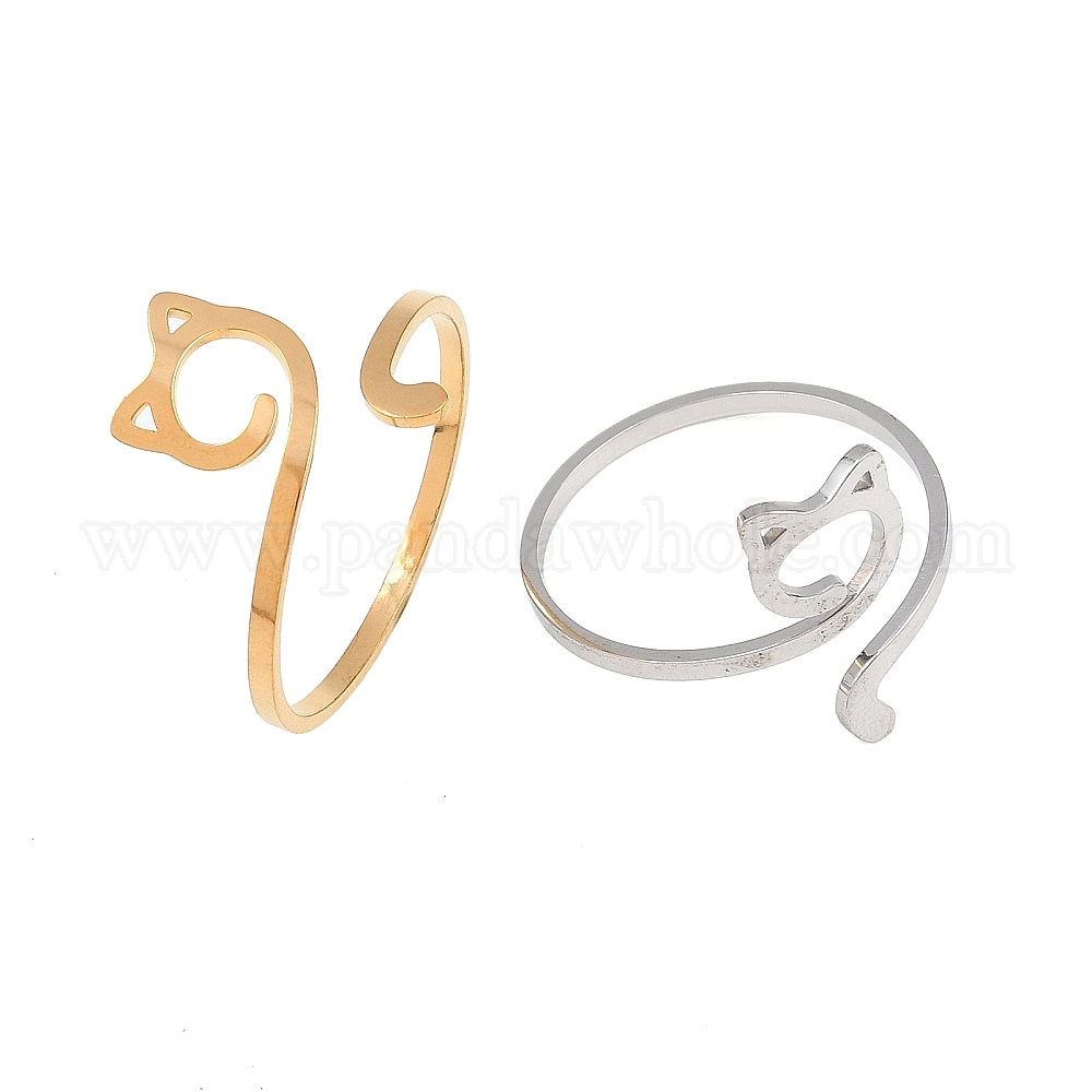 • Золотой 304 открытые кольца манжеты из нержавеющей стали, форма кошки, золотые, 1~9.5 мм, 20 мм