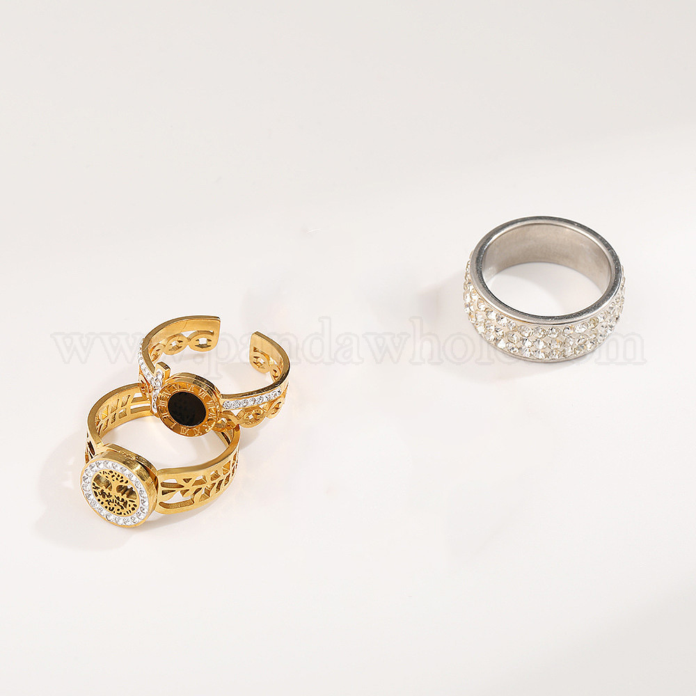 304 Кольца для пальцев/манжеты из нержавеющей стали с кристаллами и стразами