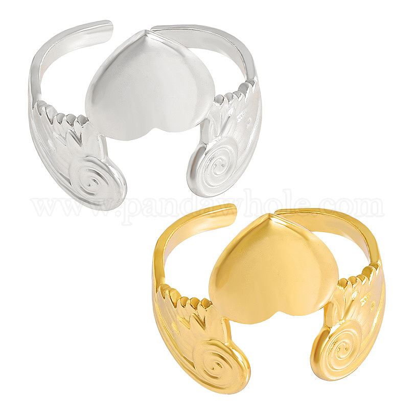 304 открытые кольца-манжеты из нержавеющей стали для женщин, сердце с крыльями
