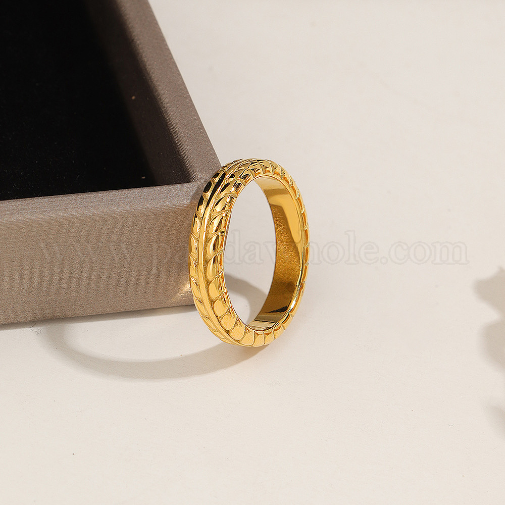 • Золотой 201 палец кольца из нержавеющей стали, цвет пшеницы, золотые, размер США 6 (16.5 мм)