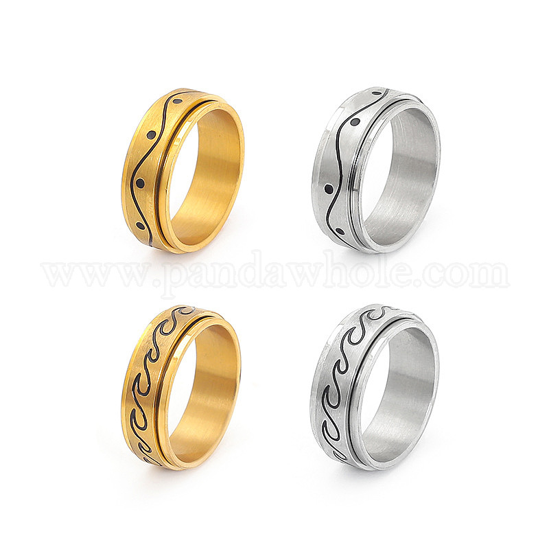 Волнообразный узор 304 вращающиеся кольца для пальцев из нержавеющей стали, вращающиеся кольца для манжеты, Кольцо-спиннер для успокоения беспокойства, медитации