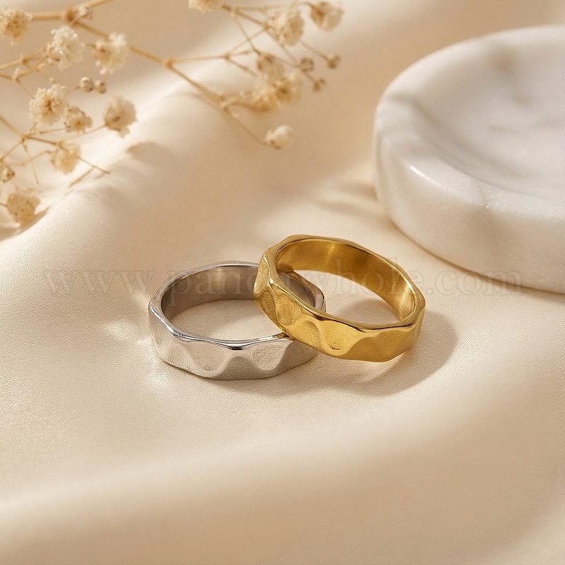 • Золотой Текстурированные 304 кольца для пальцев из нержавеющей стали, золотые, размер США 7 (17.3 мм)