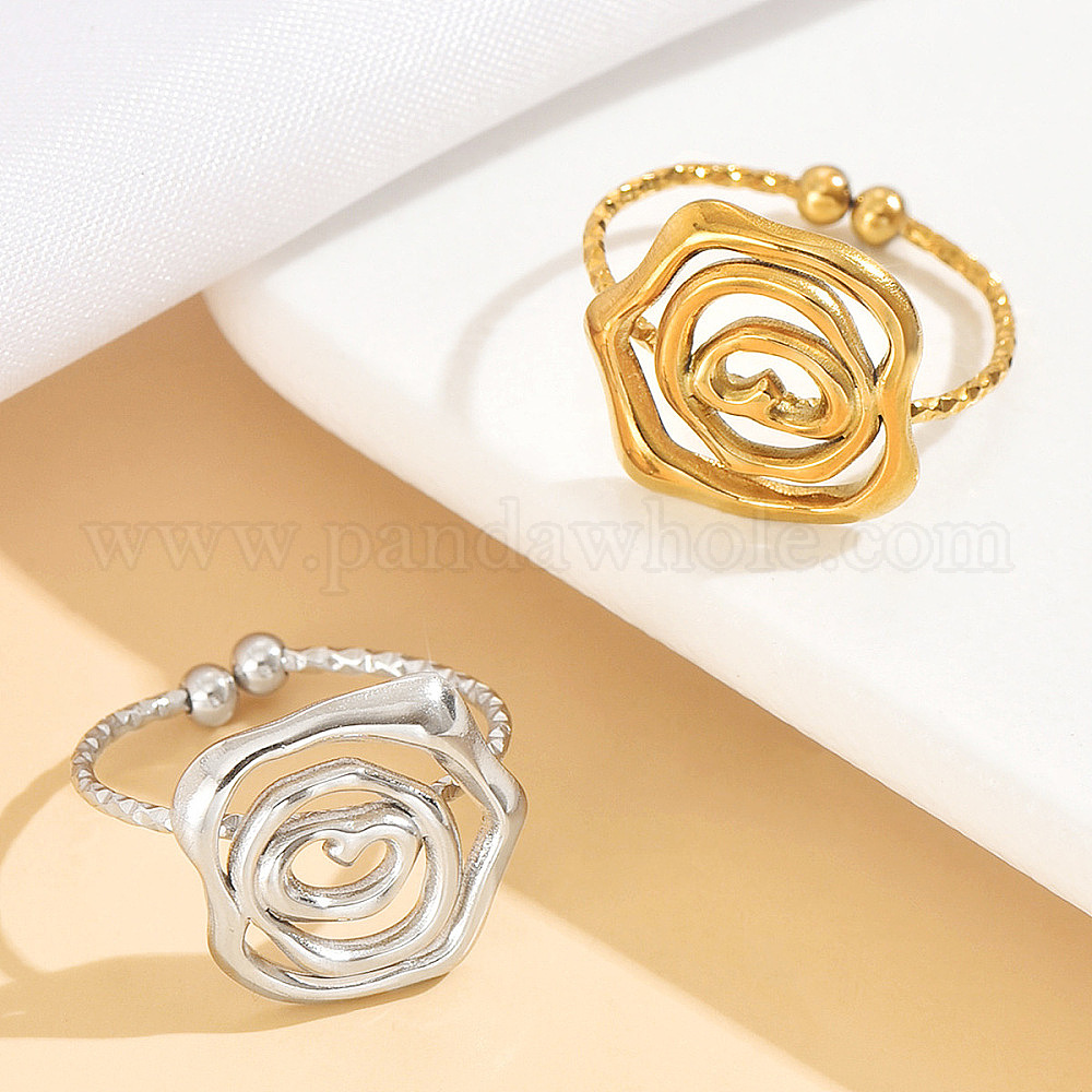 304 открытые кольца-манжеты из нержавеющей стали для женщин, цветок розы