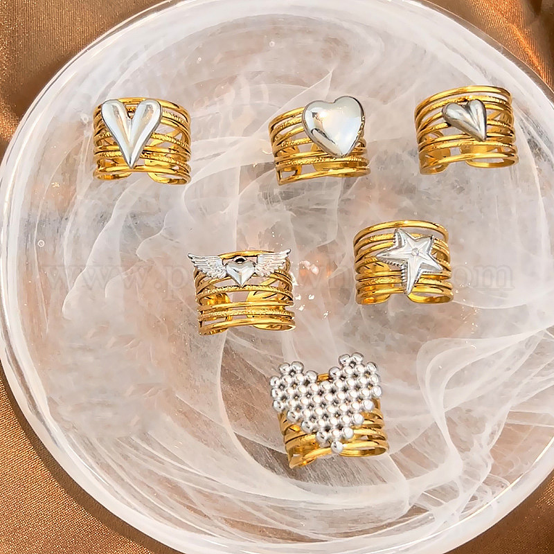 304 открытые кольца манжеты из нержавеющей стали, золотые и нержавеющая сталь цвет