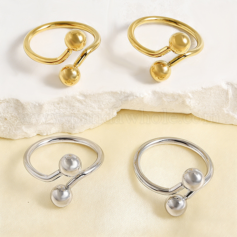 304 открытые кольца-манжеты из нержавеющей стали для женщин, круглый шар