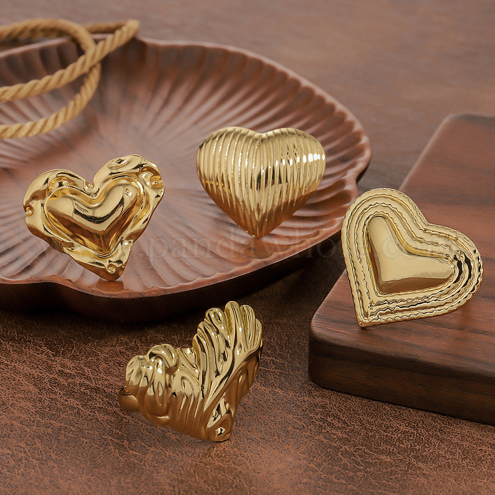 • Золотой 304 текстурированные кольца на пальцах из нержавеющей стали, сердце, золотые, 20 мм
