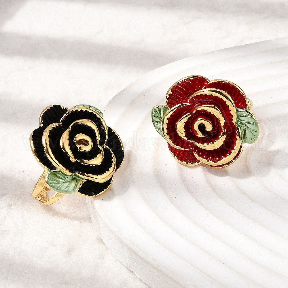 304 эмалированные перстни из нержавеющей стали для женщин, цветок розы, золотые