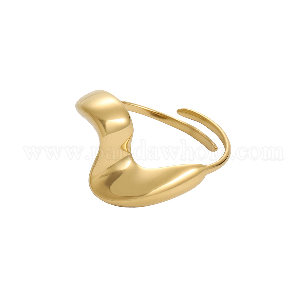 • Настоящее золото 14K 304 из нержавеющей стали манжеты кольца, ионное покрытие (ip), волнистая линия, регулируемый, реальный 14 k позолоченный, 18 мм