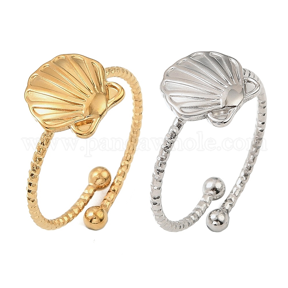 • Золотой 304 открытые кольца манжеты из нержавеющей стали, формы раковины, золотые, размер США 7 (17.3 мм)