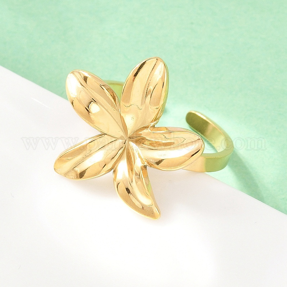 • Золотой 304 открытые кольца-манжеты из нержавеющей стали для женщин, цветок, золотые, размер США 8 1/2 (18.5 мм)