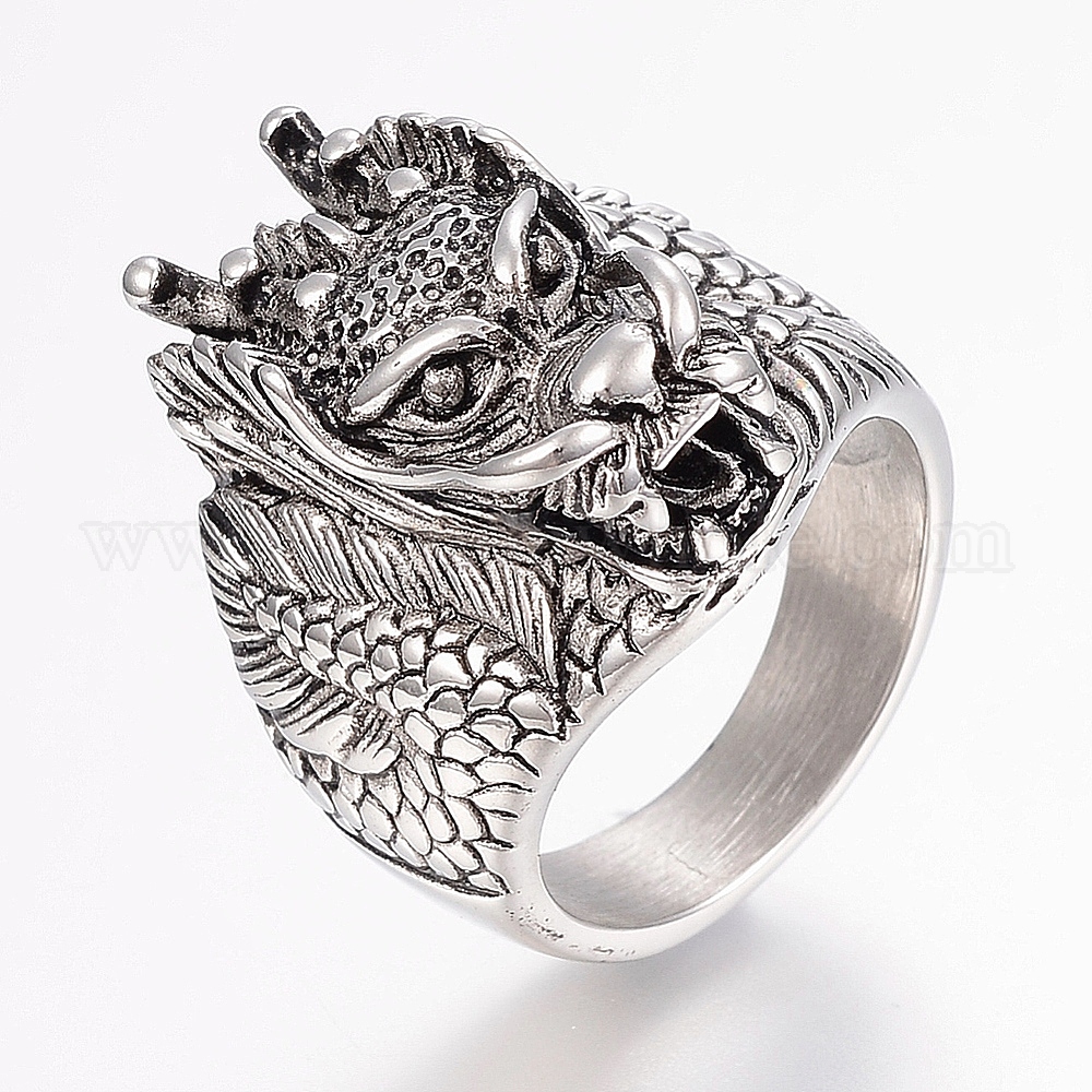304 палец кольца из нержавеющей стали, широкая полоса кольца, дракон