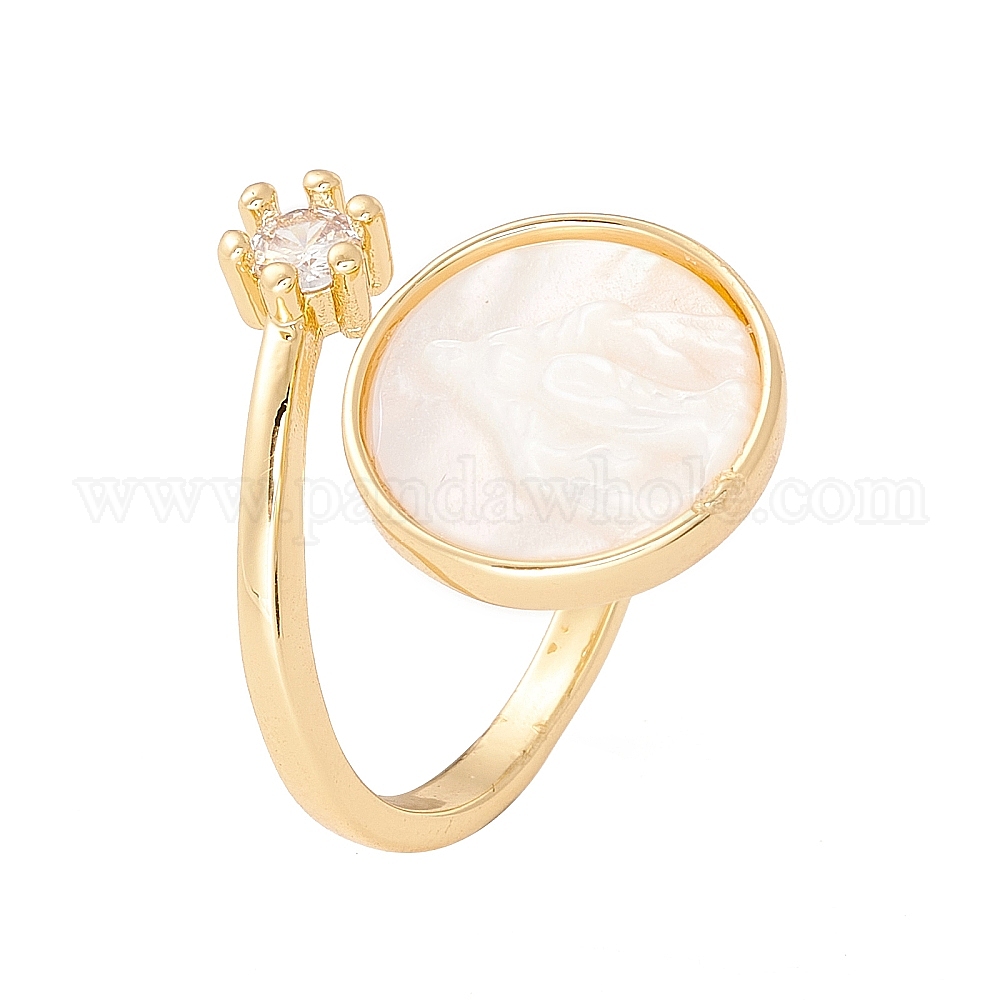 Плоское круглое открытое кольцо-манжета в виде ракушки с прозрачным кубическим цирконием, украшения из латуни для женщин, без кадмия и без свинца, долговечный (02D4Q1)