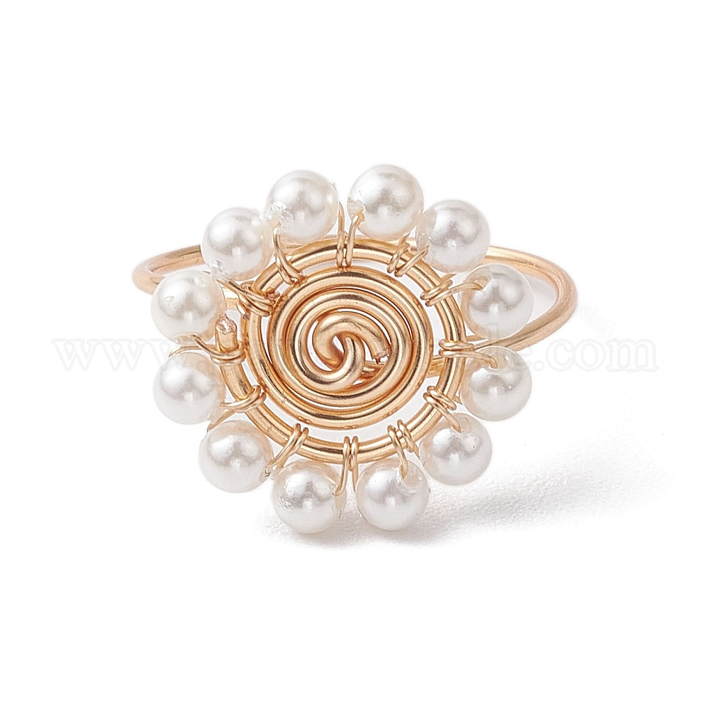 Женские кольца на палец с жемчугом и медной проволокой, цветок