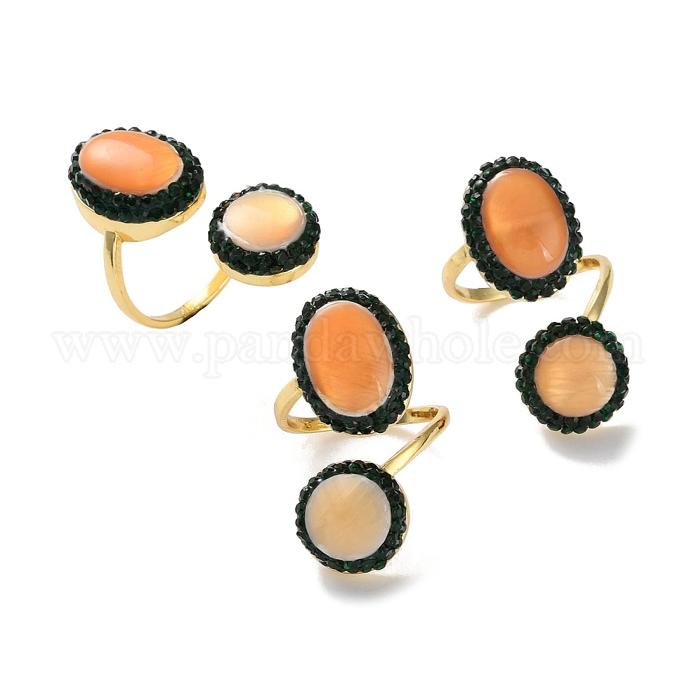 Овальные кольца из натуральной желтой ракушки, латунное открытое кольцо-манжета со стразами для женщин, долговечный