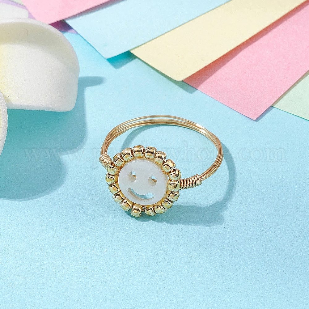 Кольца для женщин с изображением улыбающегося лица из натуральных пресноводных ракушек, кольца из медной проволоки