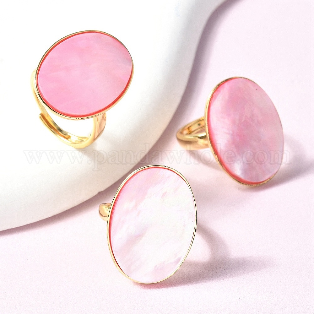 Овальные кольца из натуральной ракушки, окрашенные, украшения из латуни для женщин