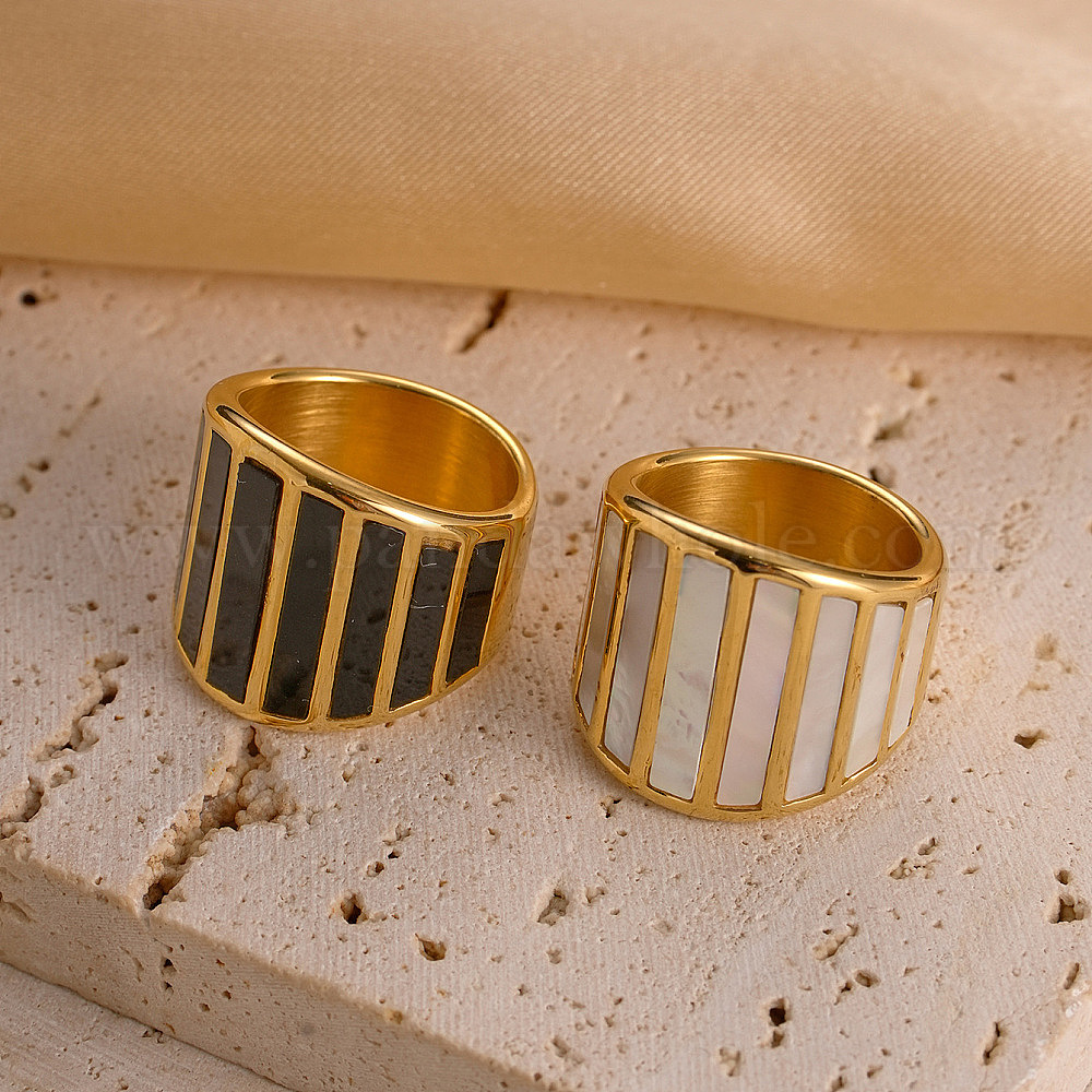 304 нержавеющая сталь с кольцами из натуральной ракушки, прямоугольные, золотые