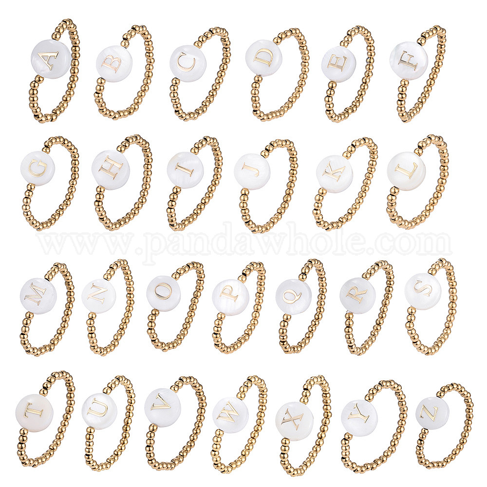 304 Кольца из нержавеющей стали и ракушек, плоские круглые с буквы, стрейч-кольца