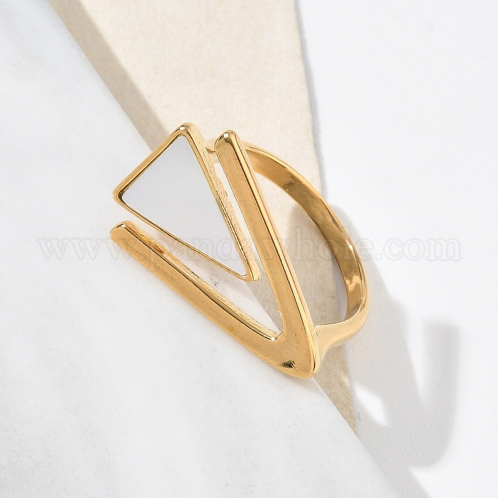 • Золотой 304 открытые кольца-манжеты из нержавеющей стали для женщин, с оболочкой, треугольные, золотые, внутренний диаметр: 19.7x18.7 мм