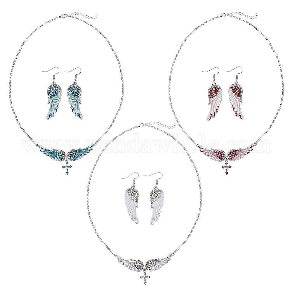 ожерелье: 22.64 дюйм (57.5 см) в длину, Удлинение цепи: 45x3.5x1 мм, Крыло: 84.5x16x3.5 мм, крест: 21.5x12.5x2.5 мм, 1 шт / цвет, 3 цветов, 3шт;