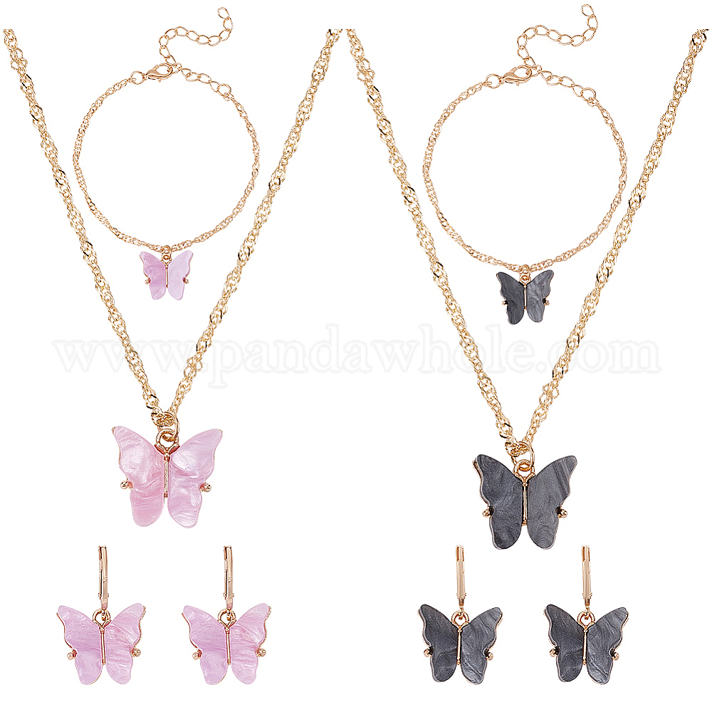 Ожерелье с подвеской в виде пластиковой бабочки, браслет и серьги с застежкой-молнией, комплект украшений из золотого сплава для женщин