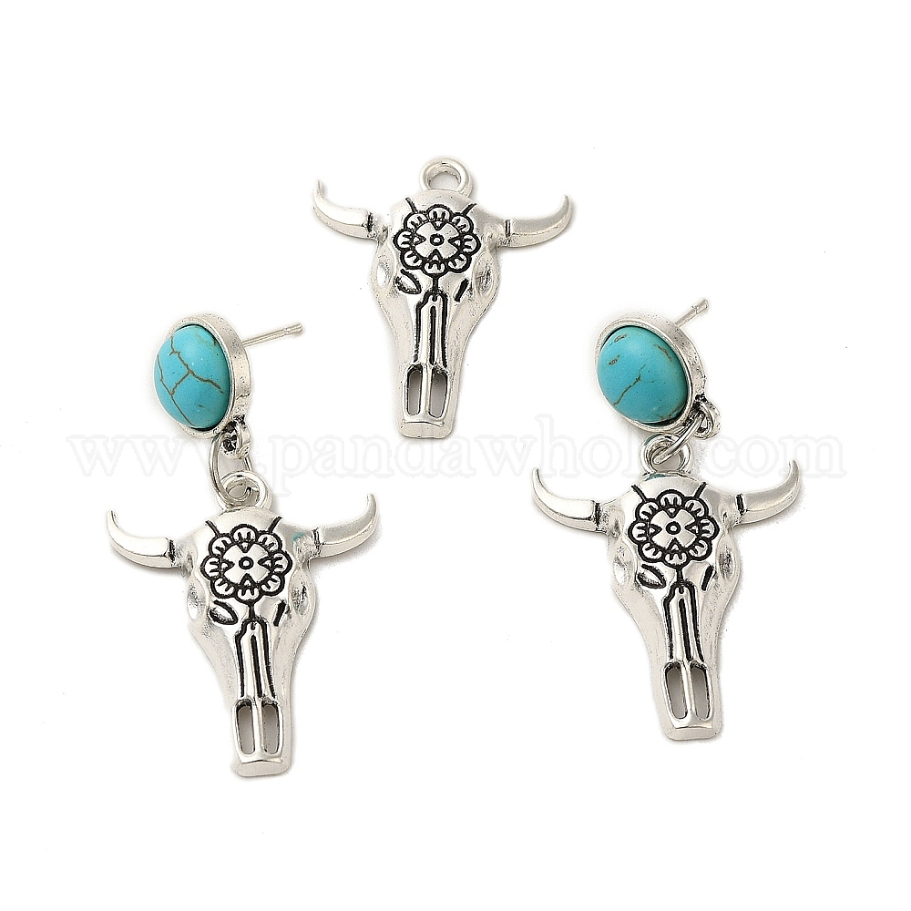 Наборы серег-гвоздиков с подвесками из синтетической бирюзы и сплава крупного рогатого скота, 316 украшения из стальной иглы для женщин