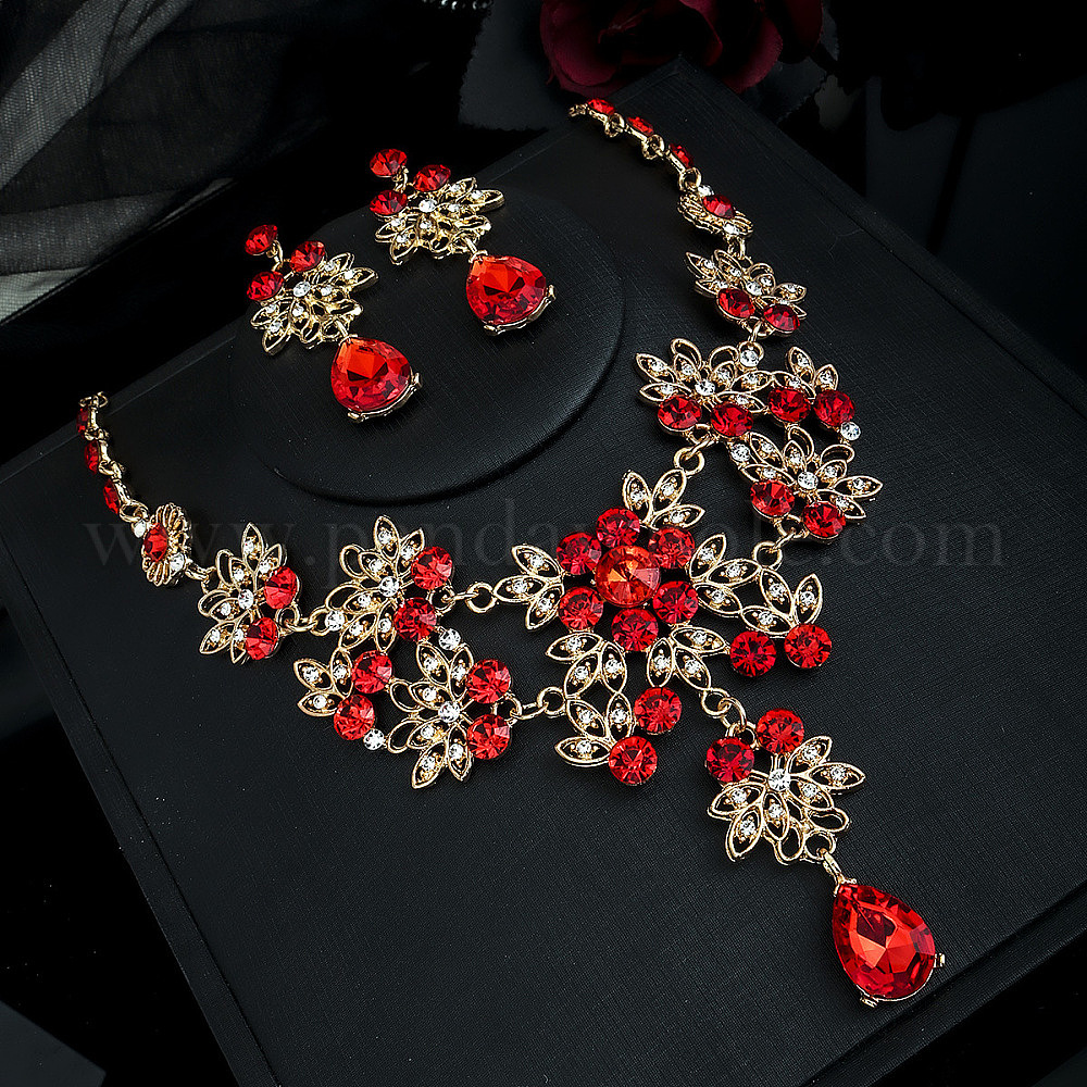 • Кристалл Комплект из серег и ожерелий из сплава и страз, украшения для женщин, цветок и слеза, кристалл, 600 мм
