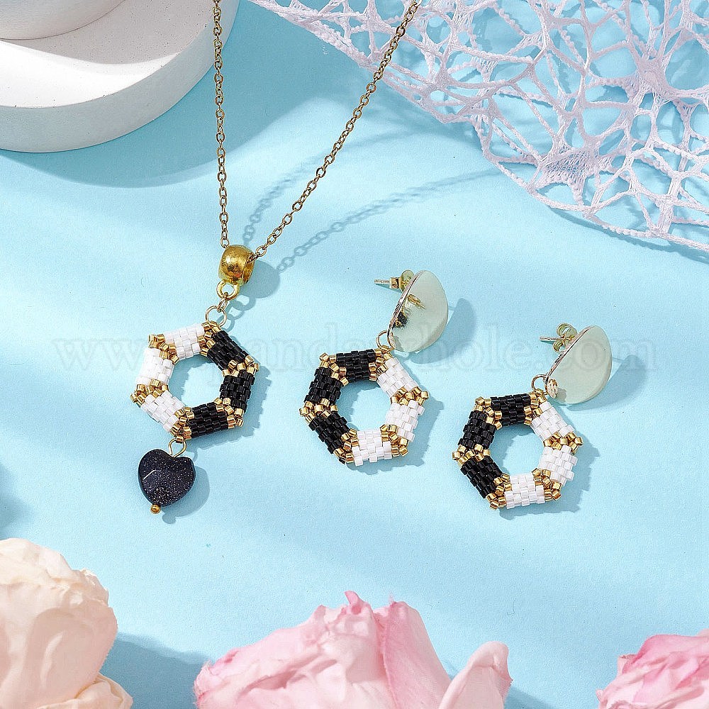 Шестиугольные стеклянные бусины серьги и подвески ожерелья комплекты, комплекты украшений из искусственного синего золота в форме сердца и нержавеющей стали для женщин (02YEGR)