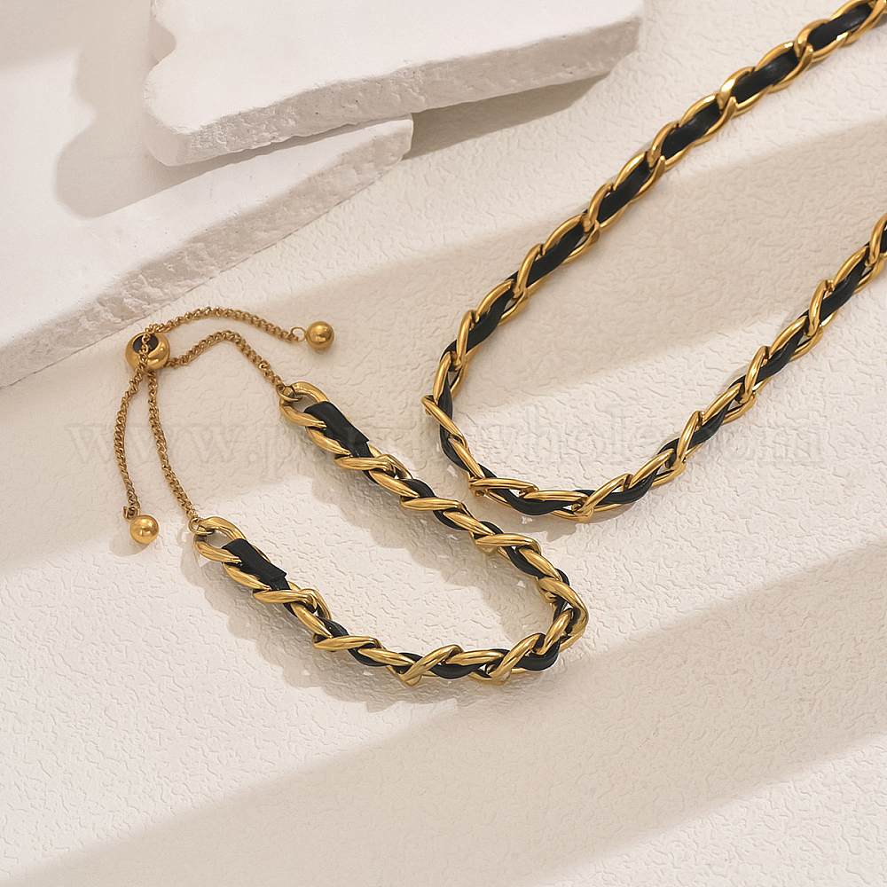 Стильный винтажный комплект из искусственной кожи и нержавеющей стали с цепочкой-лариатом и браслетом для женщин (02ZS3D)