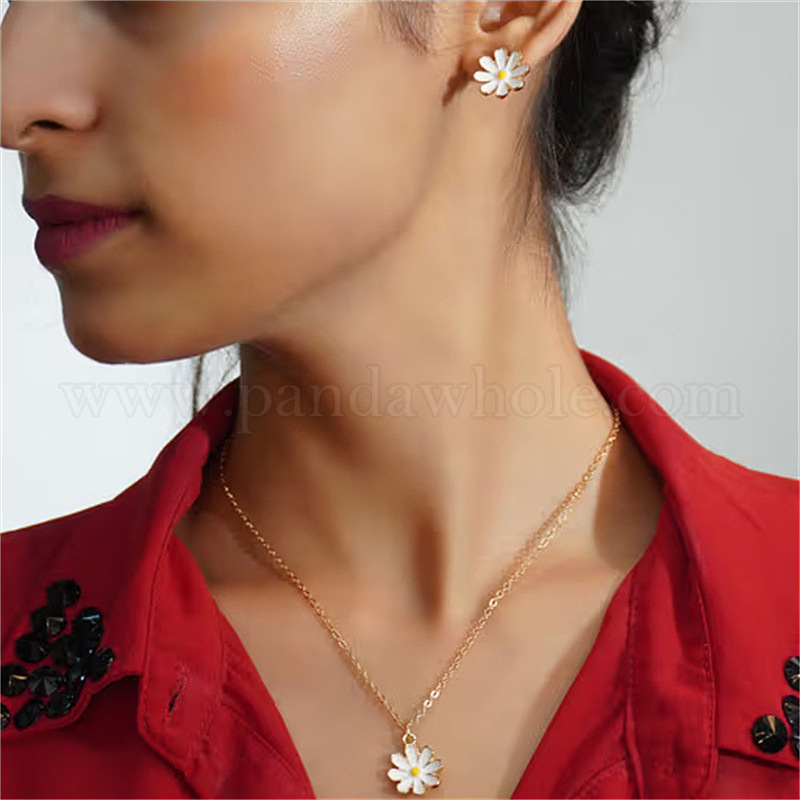 Комплект из ожерелий и серег с подвесками из эмалевого сплава в виде ромашки для женщин