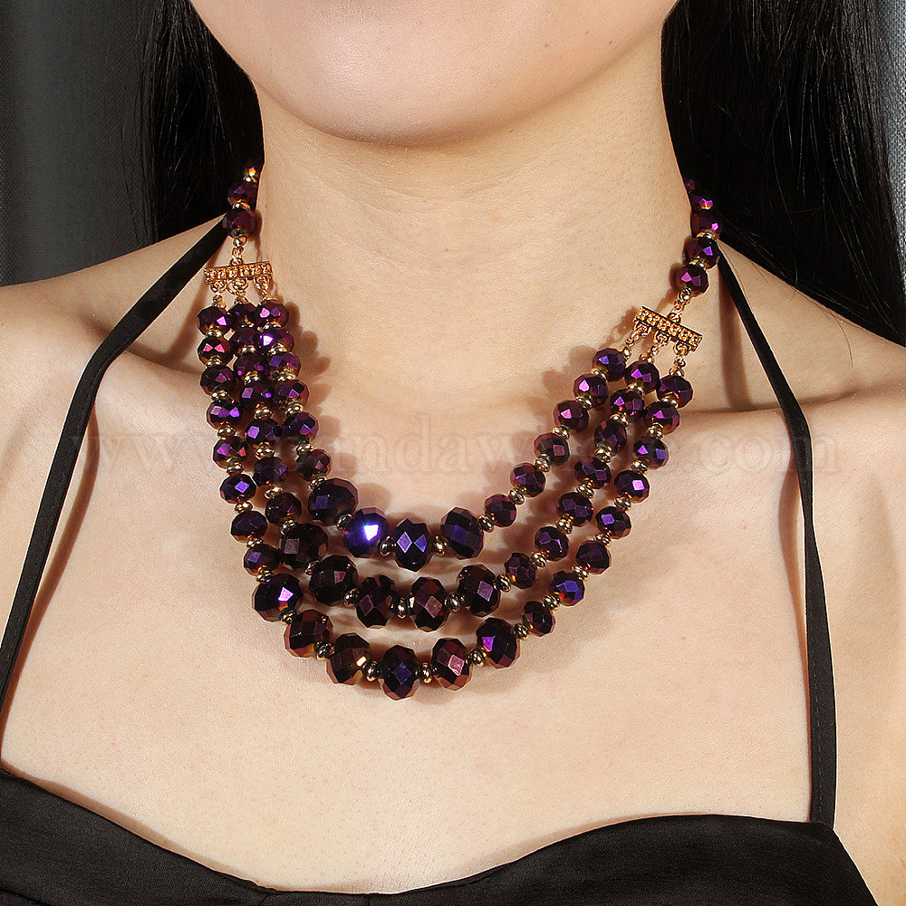 Комплект из многослойных ожерелий и висячих серег из стеклянных бусин-ронделей для женщин