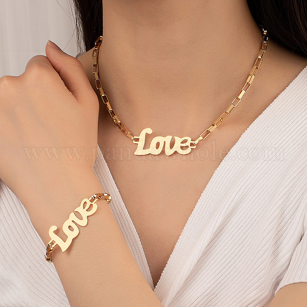 • Золотой Ожерелья и браслеты из сплава со словами «любовь» для женщин, золотые, 380 мм