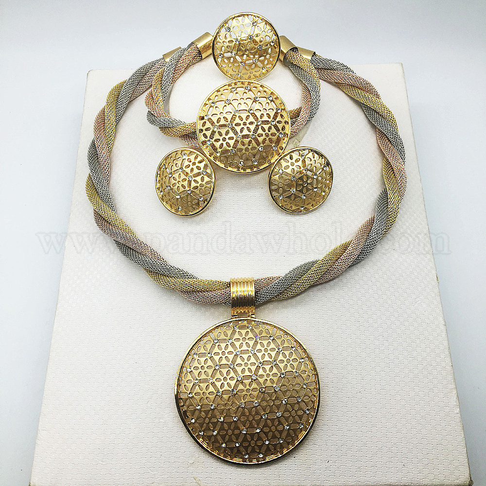 Наборы из сплава браслетов, сережек-гвоздиков, ожерелий с подвесками и колец