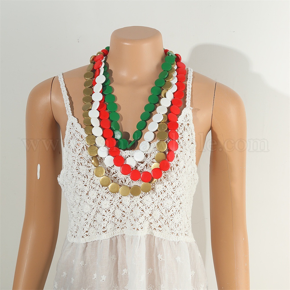• Красный Комплекты из плоских круглых деревянных бусин, многослойных ожерелий и висячих серег, красные, 580 мм