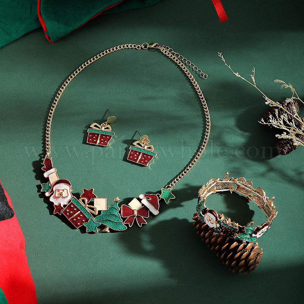 Рождественская елка Санта-Клаус подарочная коробка сплав эмаль подвеска ожерелья и серьги-подвески и браслеты наборы