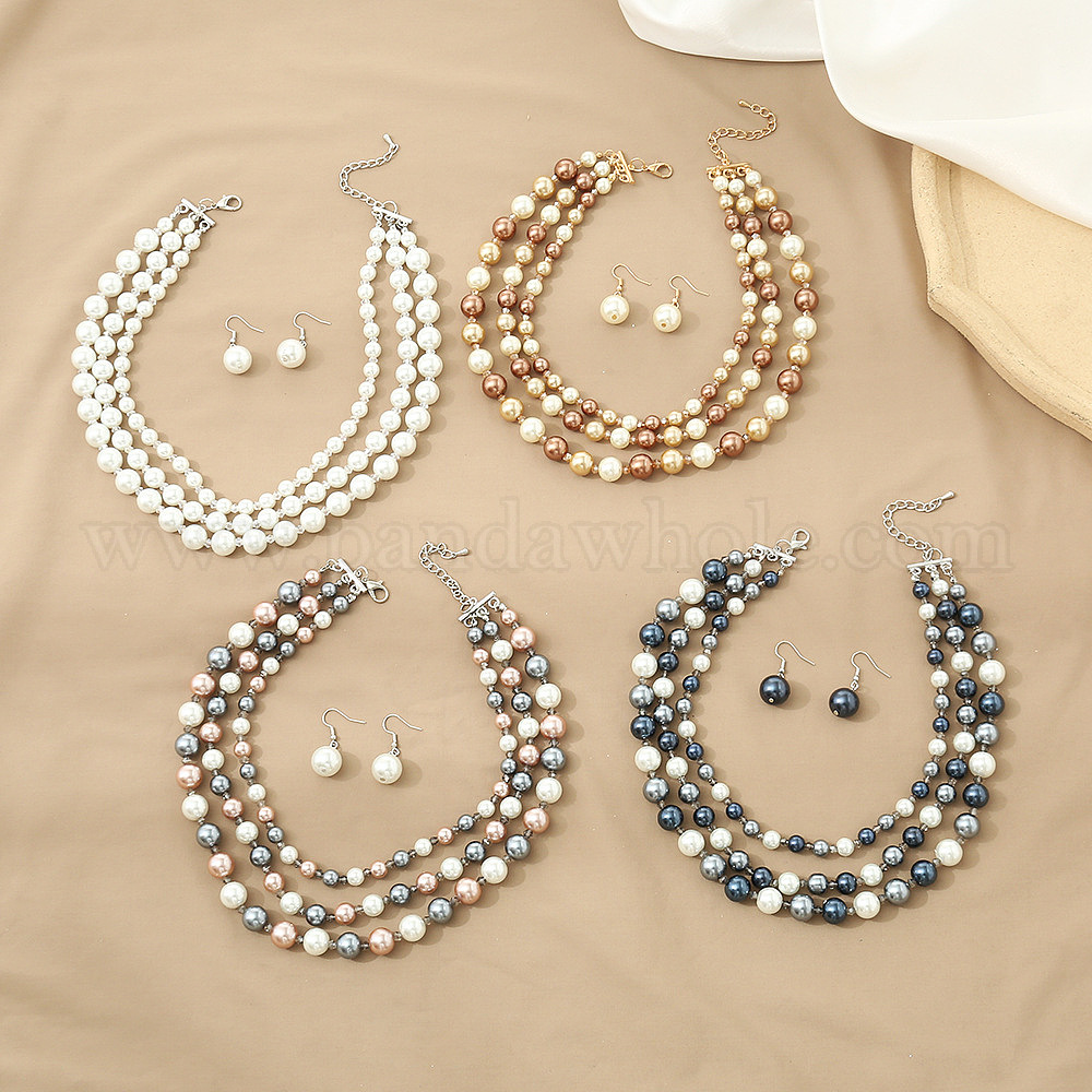 Комплекты из многослойных ожерелий и висячих серег с круглыми бусинами из искусственного жемчуга