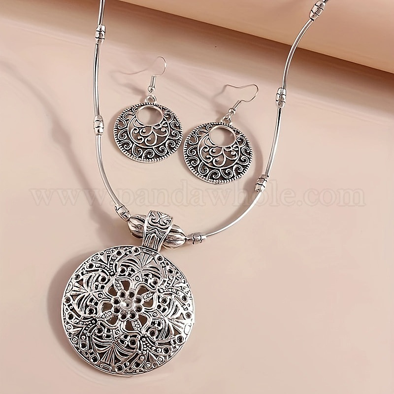 Комплекты из плоских круглых ожерелий и висячих серег в этническом стиле из сплава