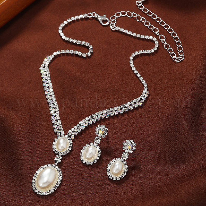 Роскошные овальные пластиковые серьги и ожерелья с имитацией жемчуга, комплекты украшений из латуни со стразами для женщин