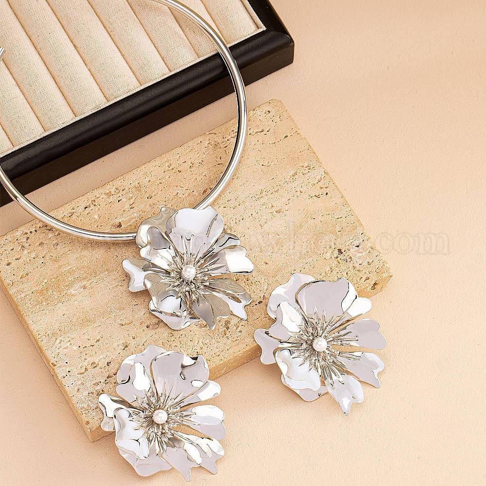Ожерелья с подвесками из цветочного сплава и комплекты серег-гвоздиков для женщин, с имитацией жемчуга