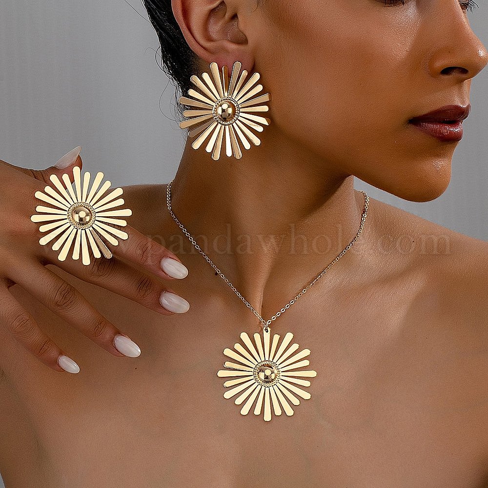 Серьги-гвоздики из сплава подсолнечника, ожерелья с подвесками и комплекты колец для женщин
