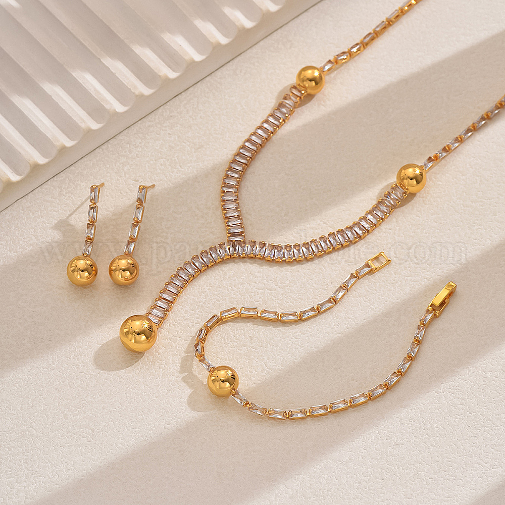 Комплекты из круглых латунных серег-гвоздиков, ожерелий и браслетов с кубическим цирконием для женских банкетов и свадеб (031H6W)