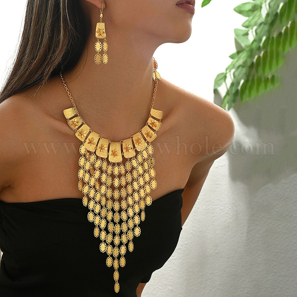 • Золотой Элегантные комплекты из ожерелий и сережек в стиле Ближнего Востока с овальными кисточками из железа и цветов для женского банкета, золотые
