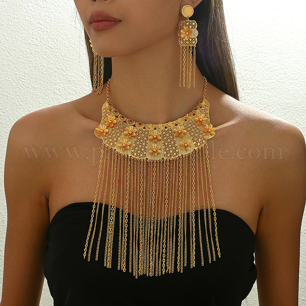 Роскошные железные серьги и ожерелья в ближневосточном стиле с цветочными кисточками для женщин