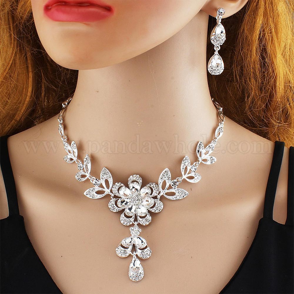 Ожерелья с подвесками из цветочного сплава и стразами и серьги-гвоздики в форме капли