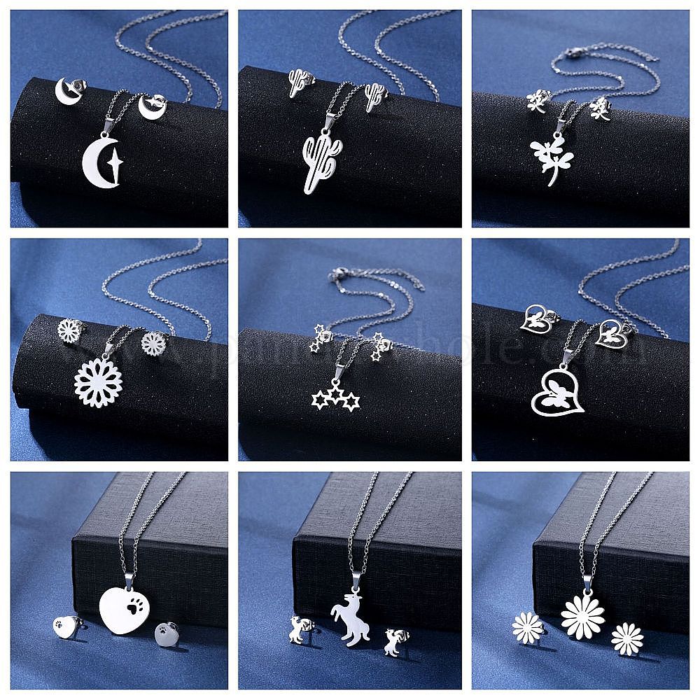 304 ожерелье с подвеской из нержавеющей стали и серьга-гвоздик, цвет нержавеющей стали